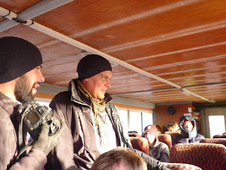 The temperature is -17°C by the time we rise for a 7a.m. departure. The whole group is suffering severe numbness in our feet. Helen and Shay are both shivering and possibly hypothermic, and Shay is sent to the cab of the truck, the only part that has heating. The interior of the passenger hold of the truck is frosted allover the ceiling, nevermind the windows. It stays that way for the whole day, barring a brief sunny interlude.