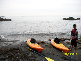 On the way back to shore, Mary-Beth tells me that we will definitely be going into the water because there is no way the kayaks will stay upright with these size of waves going onto the beach. We catch a nice big one and do manage to surf it for a while by leaning sharply backwards while M-B uses her paddle as the oar trying to keep us straight, but eventually we are rolled over and receive our dunking. This was probably the highlight of the day for me.